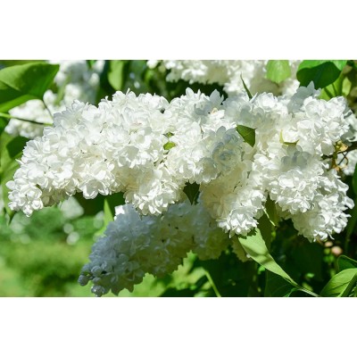 Цветение этого сорта начинается в конце мая или в начале июня и продолжается в течение нескольких недель. Цветы молочно-белые, с широкими лепестками. Аромат очень интенсивный, что делает этот сорт особенно привлекательным для любителей ароматных растений. Однако стоит отметить, что за сезон сирень цветёт только один раз.